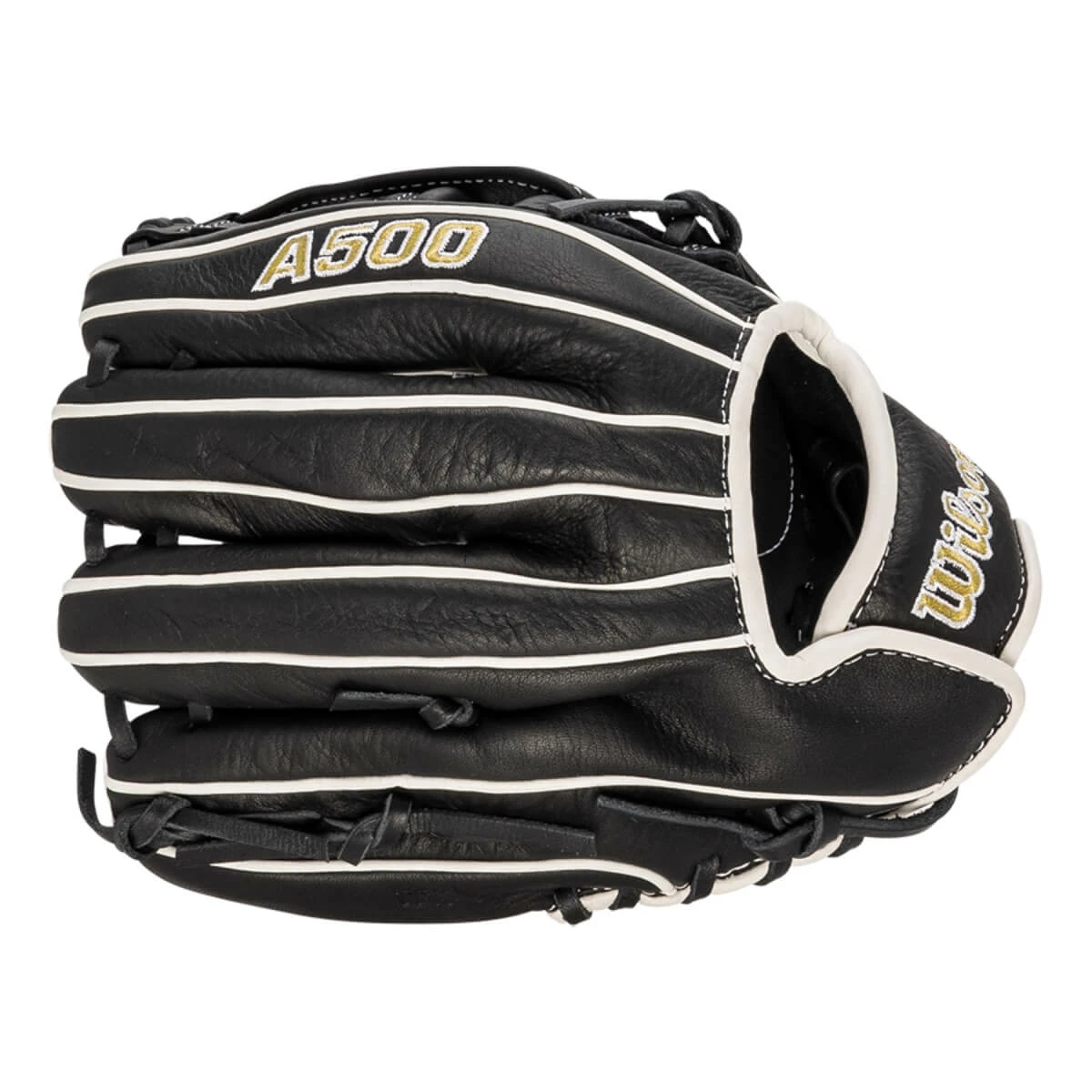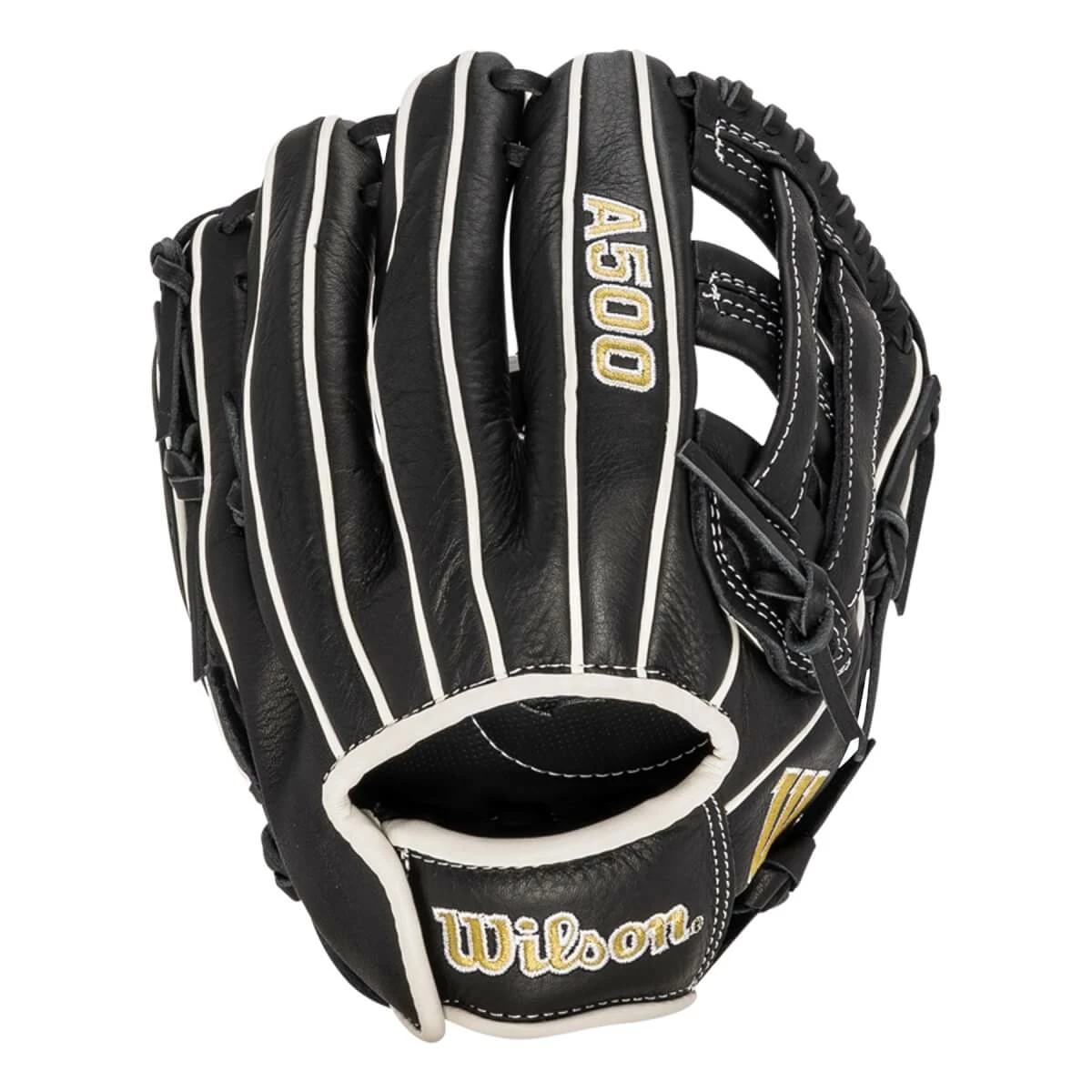 This Wilson A500 offers a 10.5-inch opening, the classic H-Web, real leather laces, and an open back. The open back will help aerate the gloved hand, keeping it dry and responsive, even on the most humid summer afternoons. Short, thin strips of Pro Stock leather are also utilized in the construction of this mitt. These strips are cut carefully and then rolled to give the supple hand feel that is so common to all Wilson baseball gloves.