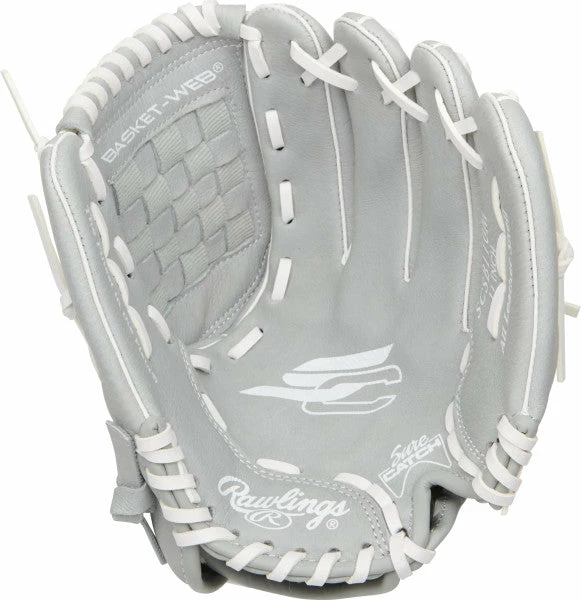 The Rawlings Sure Catch™ Softball youth glove series is constructed with a soft, all-leather shell for enhanced durability and pocket shape retention. Its Sure Catch heel cut out design allows for a quick and easy close while the Basket web creates a flexible, ball-snagging pocket making it perfect for young athletes who need a glove that’s game-ready off the shelf. Additionally, the cushioned finger linings offers added comfort and features a Velcro wrist strap for a custom fit.